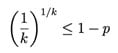 Correspondingly, for a given p, the k required for group testing satisfies the following condition:
