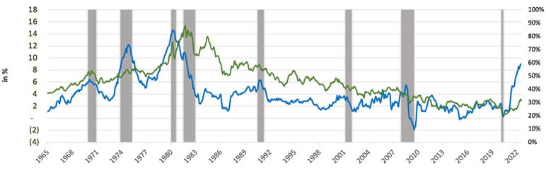 U.S Recessions are shaded