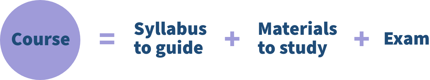 Each course includes a syllabus to guide you, materials to study, additional resources to assist your journey, and an exam to verify knowledge.