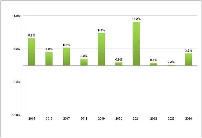Percentage Change in Recurring Canadian New Business 2015 – 2024